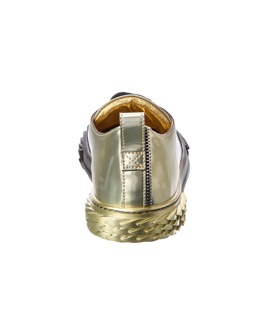 - Blabber Leather Sneaker in gold ombre leather and silver-tone hardware with zipper trim and textured sole