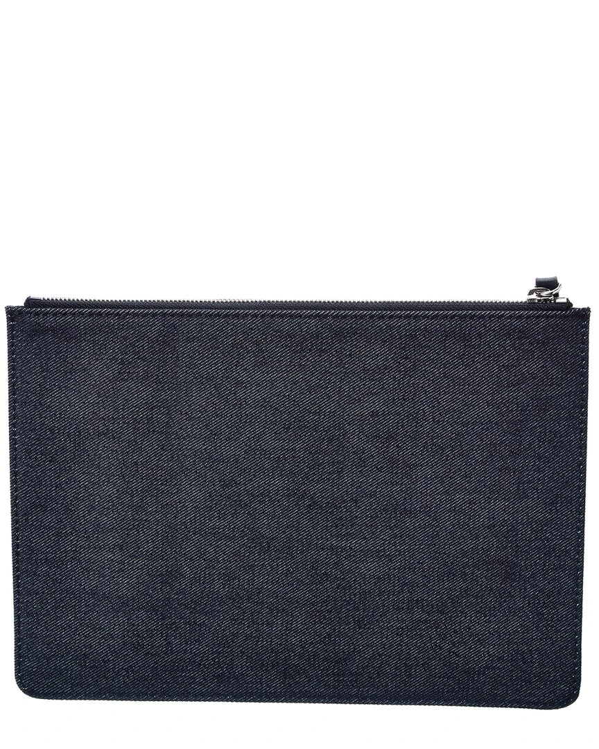 - Canvas Pouch in blue denim canvas and silver-tone hardware