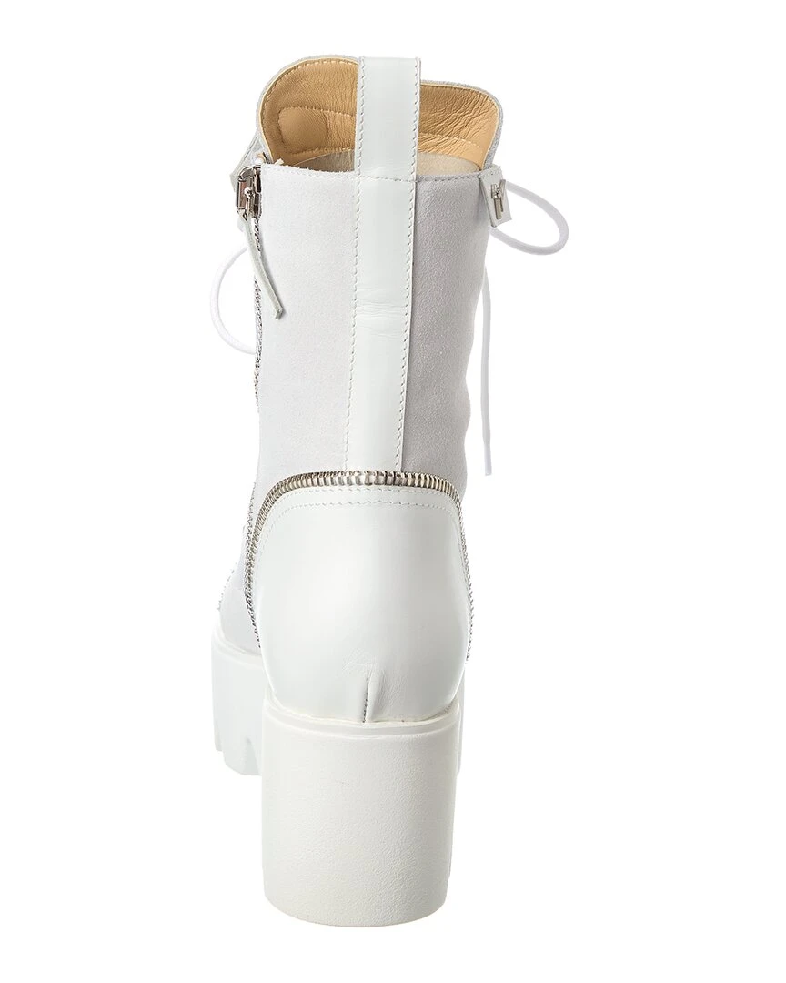 - Daikiri 20 Suede & Leather Platform Boot in white suede and leather and silver-tone hardware with zipper trim and inner side zipper