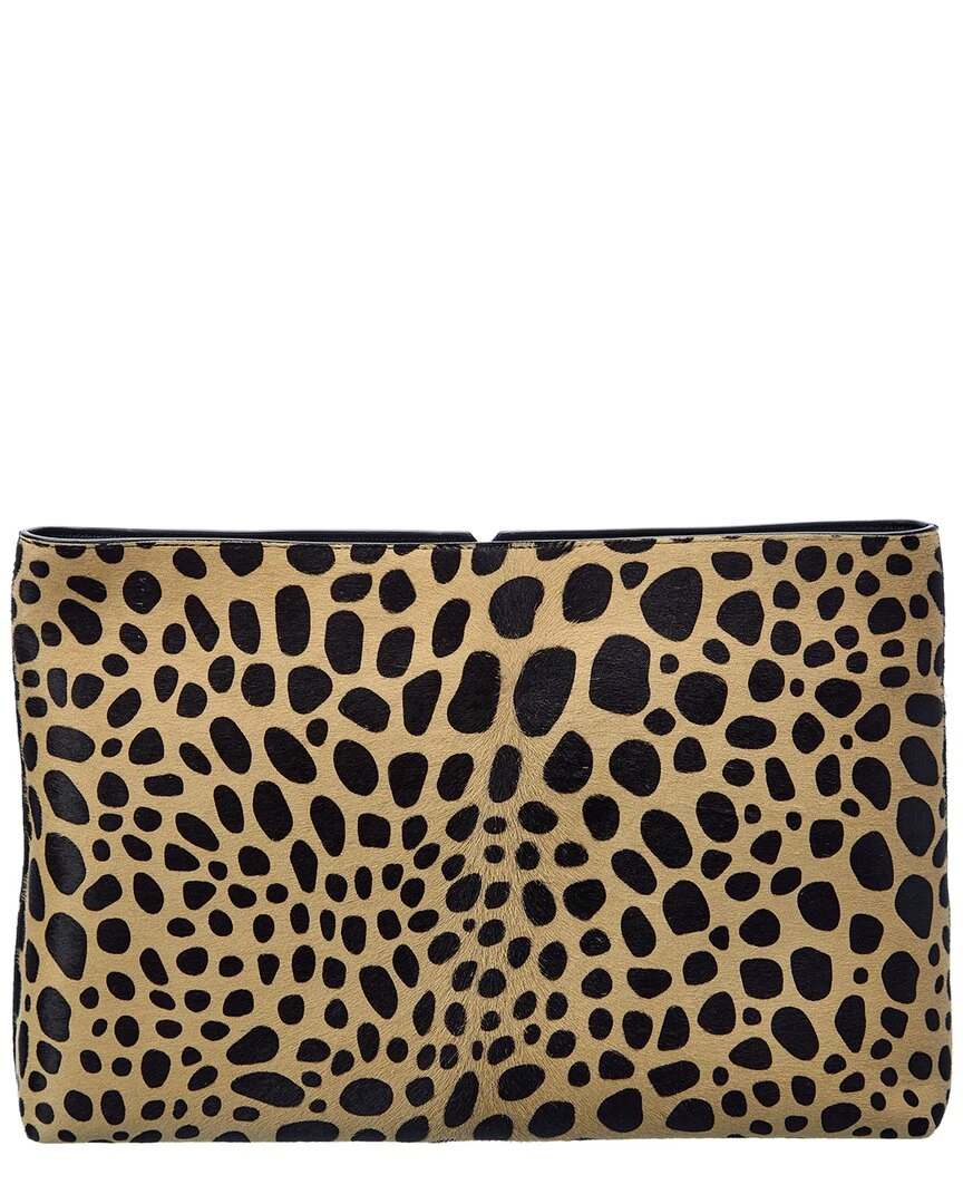 - Haircalf Clutch in beige printed haircalf and silver-tone hardware