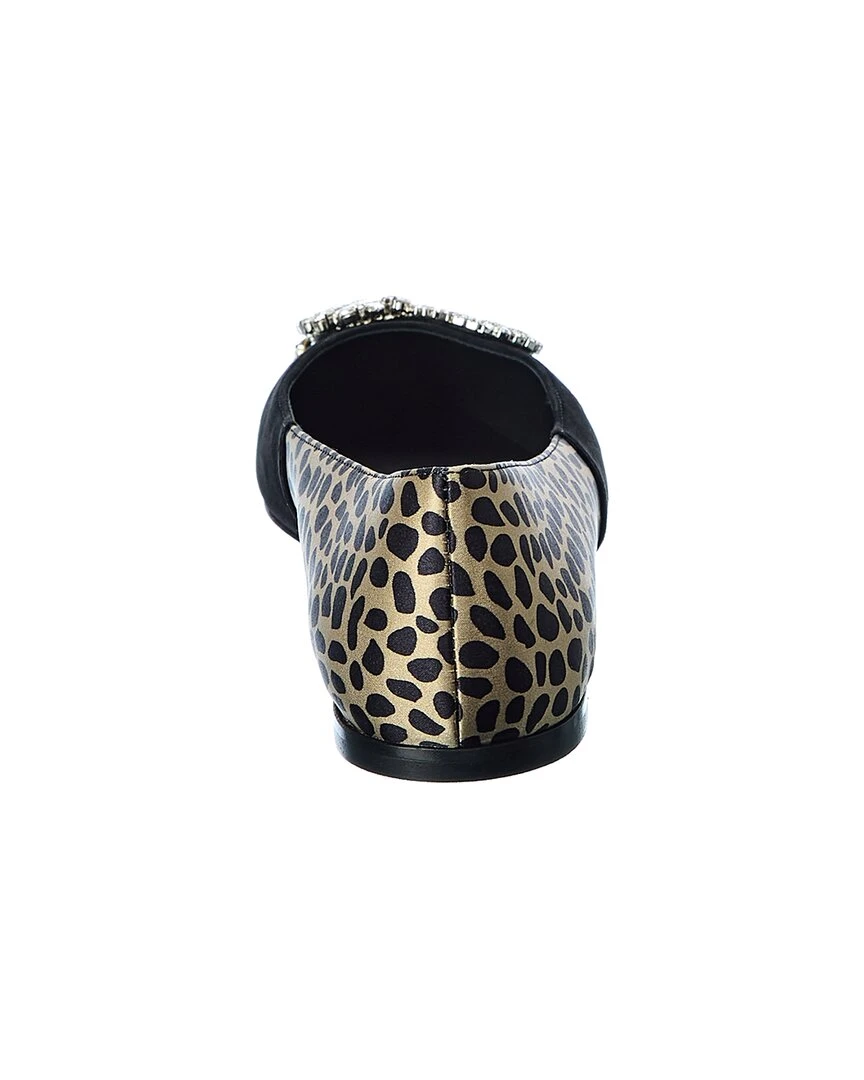 - Lucrezia Suede & Satin Flat in printed satin and black suede with crystal embellishments