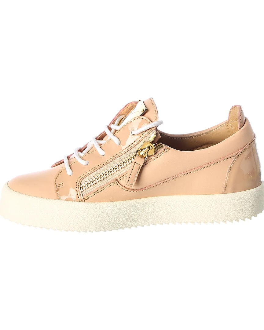 - May Leather Sneaker in nude pink leather and patent leather and gold-tone hardware with zipper accents