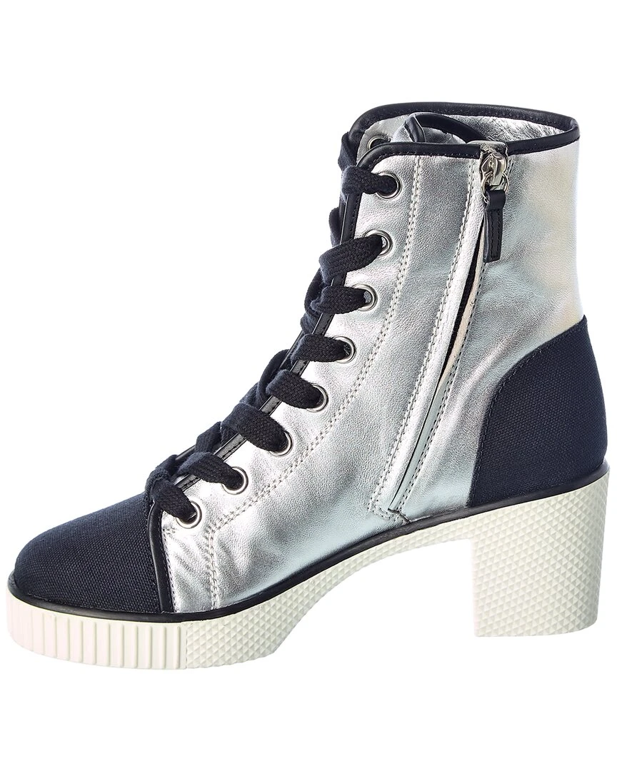 - Nidir 50 Leather & Canvas Boot in silver leather and black canvas and silver-tone hardware with lace-up detailing