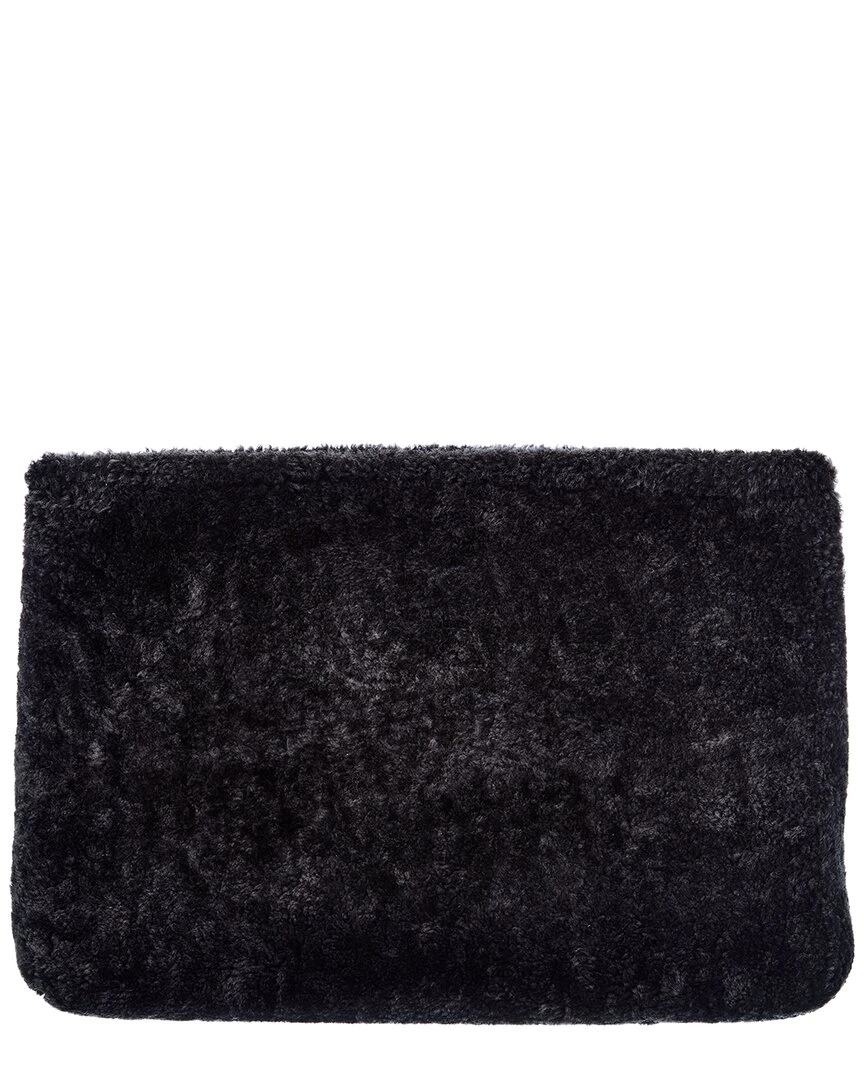 - Pouch in black faux fur and silver-tone hardware